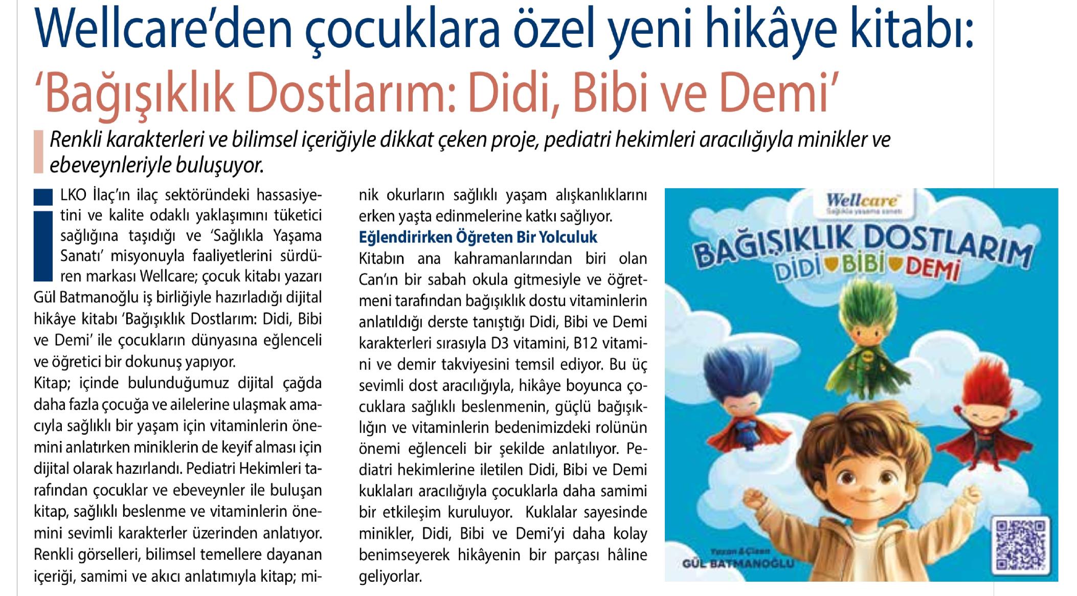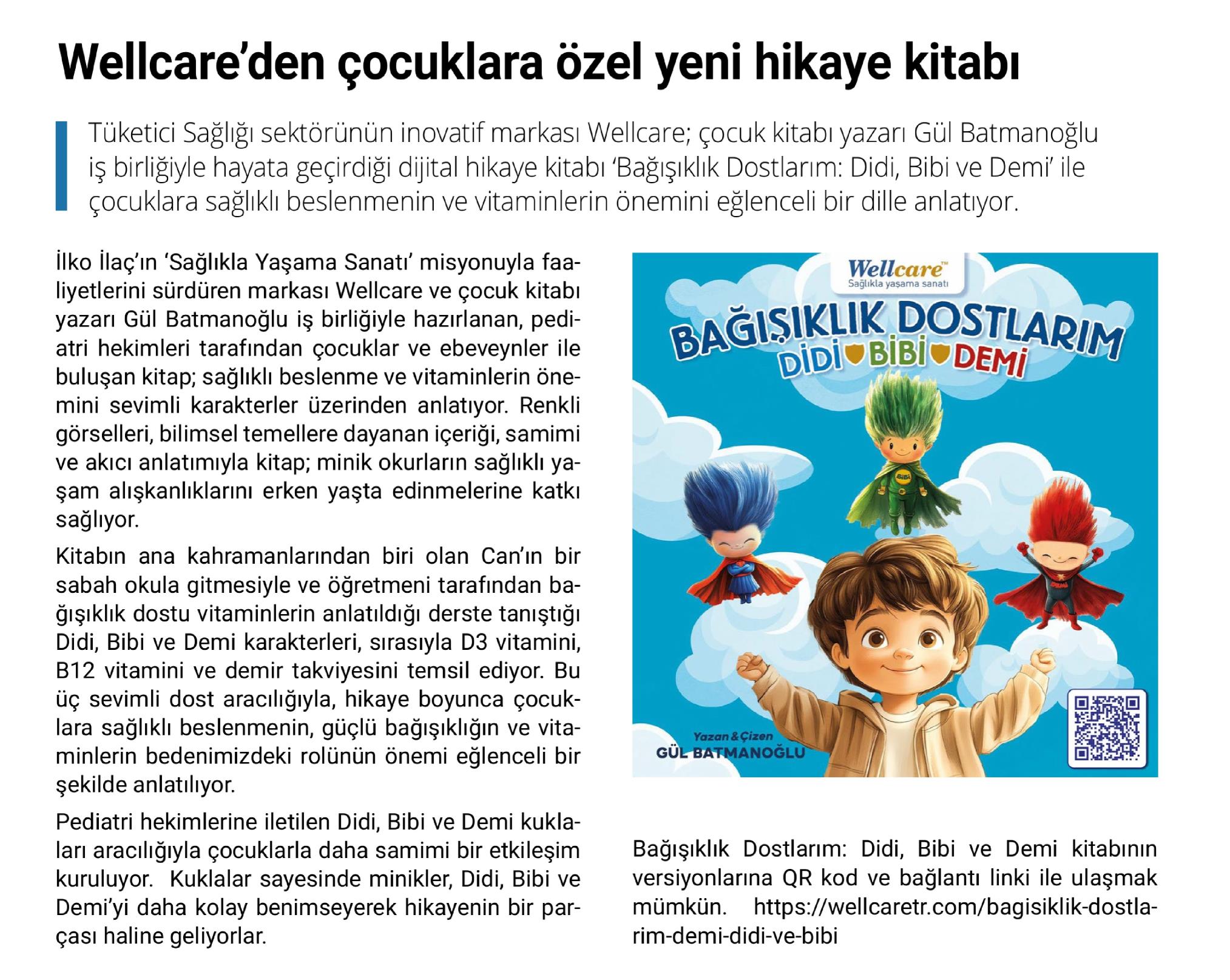 Wellcare, çocuk kitabı yazarı Gül Batmanoğlu iş birliğiyle hazırladığı dijital hikaye kitabı, Bağışıklık Dostlarım: Didi, Bibi ve Demi ile çocukların dünyasına eğlenceli ve öğretici bir dokunuş yapıyor.
