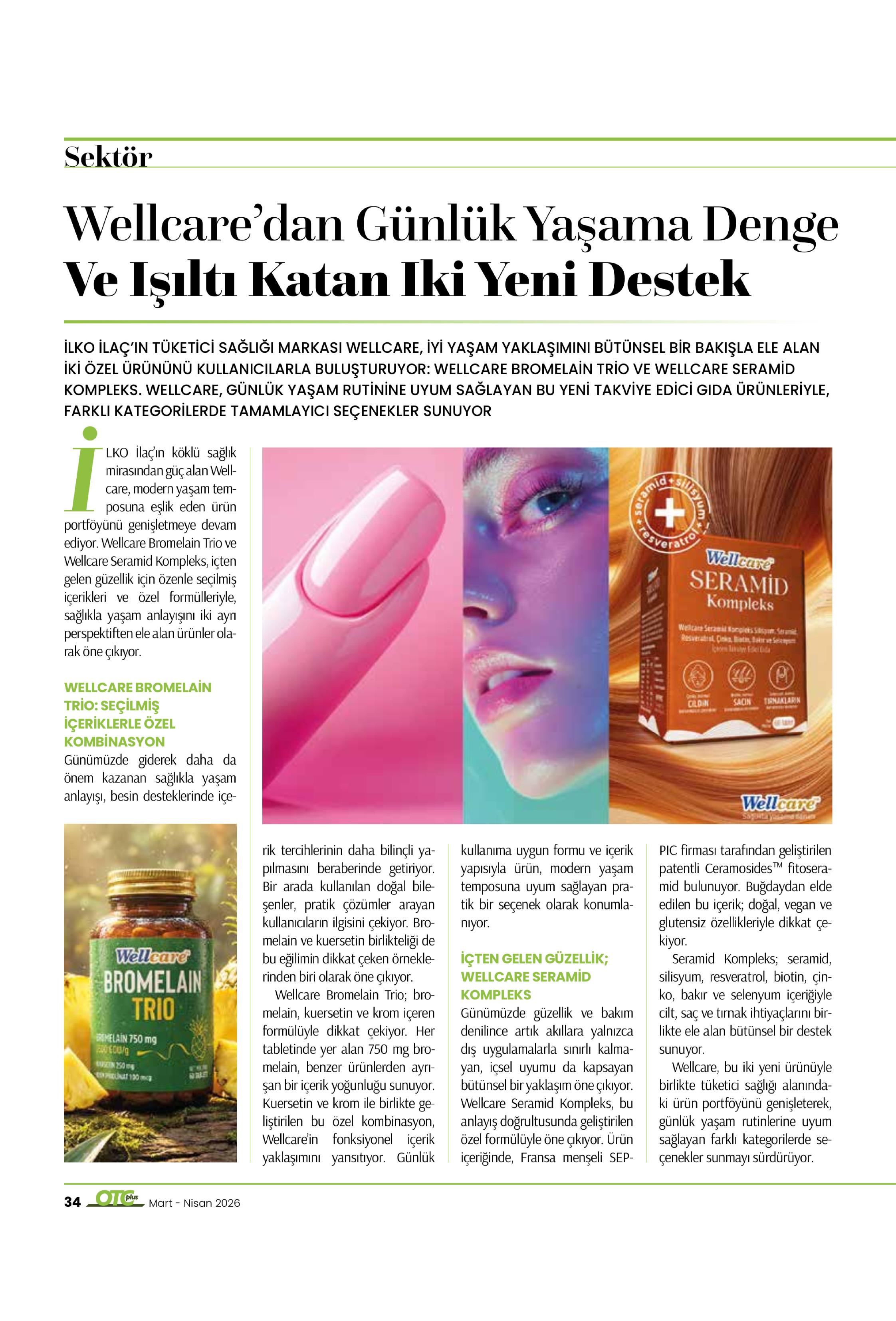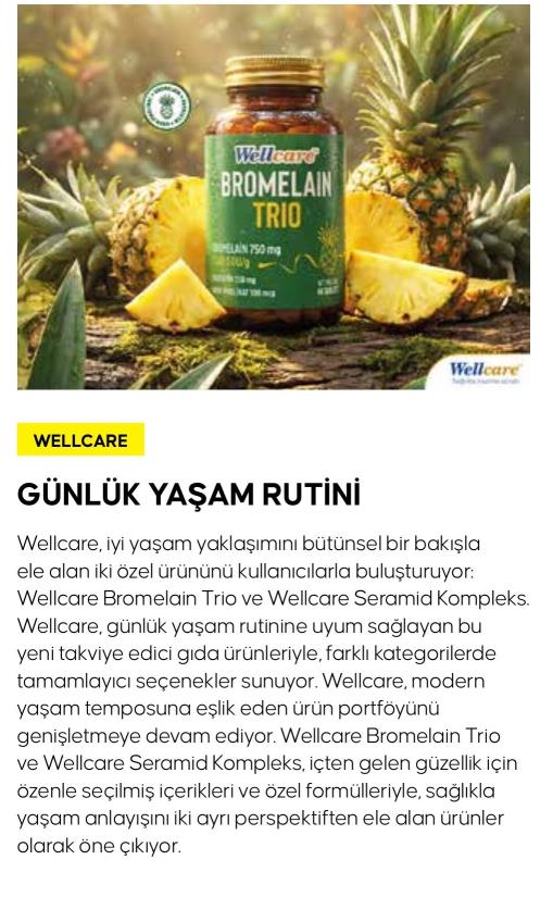 İLKO İlaç'ın tüketici sağlığı markası Wellcare, iyi yaşam yaklaşımını bütünsel bir bakışla ele alan iki özel ürününü kullanıcılarla buluşturuyor. Wellcare Bromelain Trio ve Wellcare Seramid Kompleks. Wellcare, günlük yaşam rutinine uyum sağlayan bu yeni takviye edici gıda ürünleriyle, farklı kategorilerde tamamlayıcı destek sunuyor.