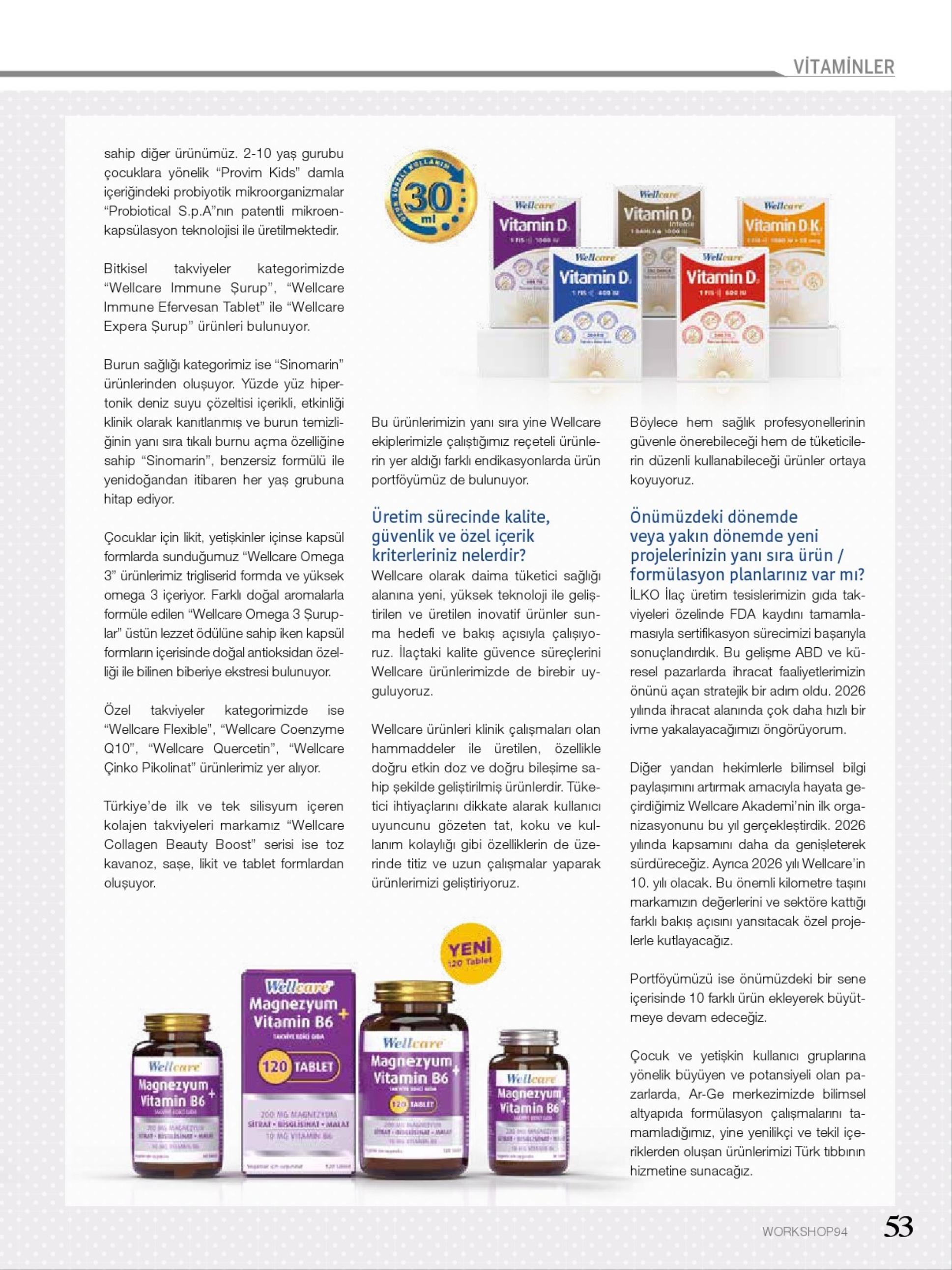 Kategori yaratıcısı Wellcare Vitamin D₃ ürün ailesi; Wellcare Vitamin D₃ 400, 600 ve 1000 IU formları şimdi 30 ml 200 fıs/gün ile Wellcare Vitamin D3K2 ise 30 ml 350 fıs/ gün şeklinde uzun süre kullanım ile yeni şişelerinde ve yeni ambalajlarında kullanıma sunuldu. Wellcare Vitamin D₃ ürün ailesi sprey 30 ml formlarıyla oral yolla alınır ve ağız içine püskürtülerek daha uzun süre kullanılır.