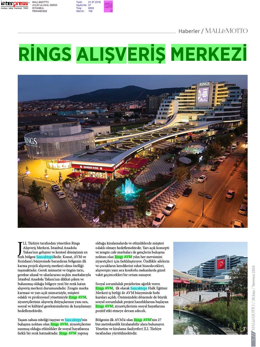 JLL Türkiye tarafından yönetilen Rings Alışveriş Merkezi, İstanbul Anadolu Yakası'nın gelişimi ve kentsel dönüşümü en hızlı bölgesi Sancaktepe'dedir.