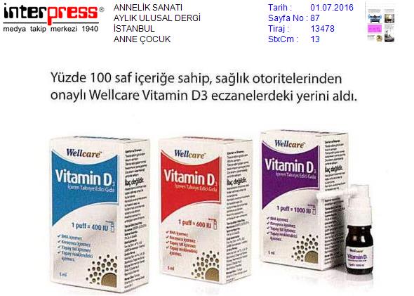 Yüzde yüz saf içeriğe sahip, sağlık otoritelerinden onaylı Wellcare Vitamin D3 eczanelerdeki yerini aldı.